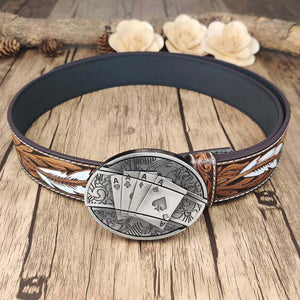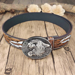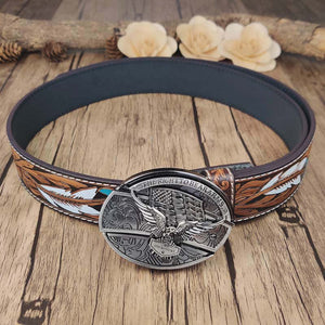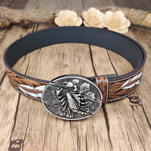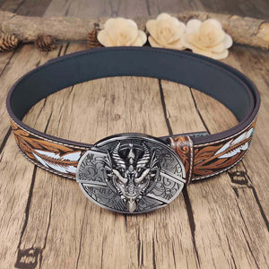 Feathered Edge Buckle Knife Belt is combines a bold feather embossed design with a sleek, cool oval buckle, offering a unique and fashionable leather belt. Crafted from durable cow leather, the belt provides both comfort and strength, while the zinc alloy buckle adds a touch of sophistication. The interchangeable snap feature allows for easy customization, letting you switch out buckles to match your style.
