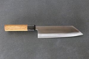 This bunka knife suitable for most purposes. it can be used for fish, meat, and vegetables. Compared to Gyuto and Santoku, the blade shape of a Bunka has advantages for processing fish due to its pointed tip.