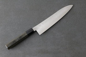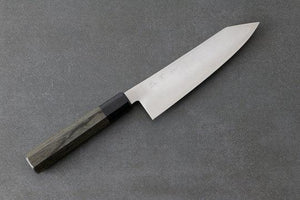 Dieses Gyuto Messer ist ein vielseitig einsetzbares Kochmesser und mit seiner Klingenlänge von 210mm eher ein großes Kochmesser. Es ist für die Zubereitung von Fisch und Fleisch, aber auch für das feine Zerkleinern von Kräutern, Zwiebeln und sonstigem Gemüse ist dieser Messertyp optimal geeignet.
