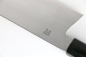 Dieses handgeschmiedete Bunka von Matsubara ist eines der ersten Exemplare von Tanaka-san mit dem außergewöhnlichen ZDP-189 Klingenstahl. Das Design ist eher schlicht und puristisch, da die Klingenoberfläche poliert ist. Der ZDP-189 bildet den Kernstahl und damit die Schneide des Messers. Um den Kernstahl aus ZDP-189 wurde ein weicherer Edelstahl geschmiedet, damit das Messer unempfindlicher gegen Rost ist und damit der extrem harte Klingenstahl eine dämpfende Außenlage erhält. Damit wird die Klinge flexibler und besser geschützt gegen Beschädigungen. Da der ZDP-189 Stahl extrem hart ist, wird er auch extrem scharf geschliffen und ist damit auch schnitthaltig wie kein anderer Stahl auf dem Markt. Die Klinge muss vorsichtig behandelt werden, damit eine Beschädigung der Klinge durch Schläge oder hebelnde Schnittbewegungen verhindert wird.