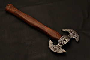 Hand Forged Damascus Double Headed Axe with precision and designed for strength, this Double Headed Axe is a true masterpiece. Made from high-quality 67 Damascus steel layers and 60 HRC it offers durability and a unique, eye-catching twist pattern on the blade.