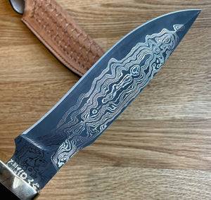 Experience the art and craftsmanship with this High-Quality Royal Crest Damascus Bowie by Jun. introducing one of premium bowie knife with a stunning 150-layer REAL Damascus steel blade, forged with a precise blend of 15n20 and premium carbon steels (1070, 1075, or O2), it delivers unmatched sharpness and durability. Whether you’re hunting, camping, tracking, or bush crafting, is bowie knife is built to tackle any challenge. The beautifully designed handle combines rich walnut wood, ebony wood, and brass for an elegant, ergonomic grip. A true work of art, made by Jun blacksmiths for those who appreciate art and excellence in every cut.]\`