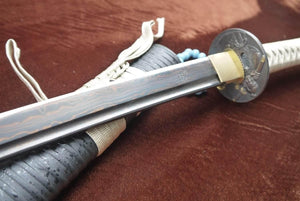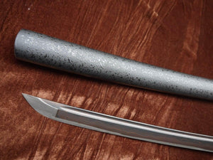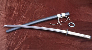 Take your collection of swords to new level with our Warrior Katana Samurai Sword meticulously crafted from premium Damascus steel and folding steel. This sword features a robust 27" blade with a sleek black-painted solid wood scabbard, embodying both elegance and strength.