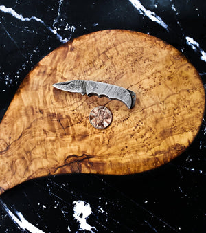 Mini Damascus pocket Knife is handcrafted and beautifully hand-forged to outperform functionally. We Hand forged the blade to align the carbides at the edge for optimal impact and erosion resistance.