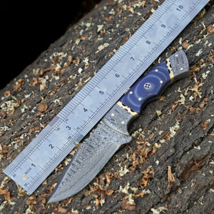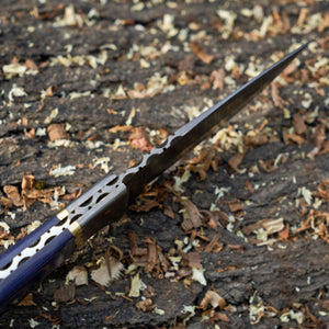 Handle: 4.25" Blue Micarta, Damascus Bolsters, Mosaic Pins