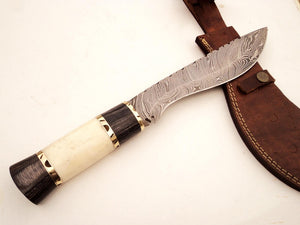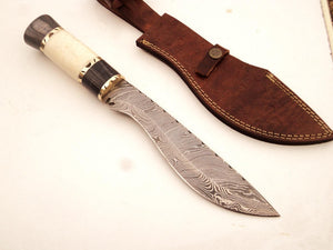 The Bowie Kukri combines the strength of a kukri’s curved power blade with the timeless appeal of a Bowie knife, creating a versatile tool built for serious use. Forged from Damascus steel, the 8.5-inch blade delivers exceptional sharpness, durability, and striking layered patterns that make each knife unique.
