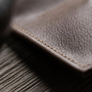 The double leather strap allows for quick and easy opening and closing. Crafted with premium, untreated waxed leather, it naturally absorbs oils, so stains fade over time, and dirt can be wiped away with a damp cloth.