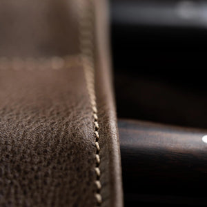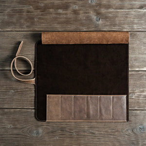 The Artisan Leather Knife Roll Featuring 6 double-stitched slots and a durable suede inlay, it offers unmatched protection and stability. The double leather strap ensures quick and easy access. Crafted from premium untreated waxed leather, it naturally absorbs oils, so stains fade over time, and dirt wipes clean with a damp cloth. Come with option of name engraving to make it best personalized leather roll.