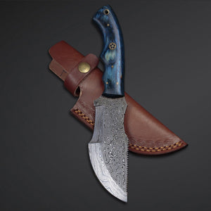 Crafted for the discerning outdoorsman, the Sapphire Blue Custom Damascus Tracker Knife is a true testament to premium craftsmanship. Designed for utility, strength, and beauty, this fixed-blade knife combines the performance of top-quality materials with an eye-catching design that stands out come with handmade Leather Sheath.