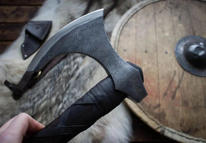 Honor the legendary Viking king with the King Ragnar Lothbrok Axe, a 24-inch premium hand-forged Viking weapon that embodies power, leadership, and Norse tradition. Crafted with a high carbon steel head and a durable wood handle, this axe is designed for collectors, history enthusiasts, and those looking for a unique, high-end gift. Inspired by Ragnar Lothbrok, this Viking axe makes a striking addition to any collection of historical weaponry.