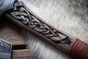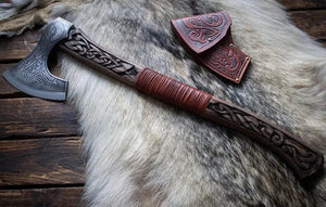 The power of the Viking with our Premium Style Viking Axe, a beautifully crafted weapon and piece of history. Designed for the modern warrior and gentleman, this 22-inch axe combines high carbon steel durability and precision with a sturdy Ash Wood handle, offering strength, flexibility, and a comfortable grip.