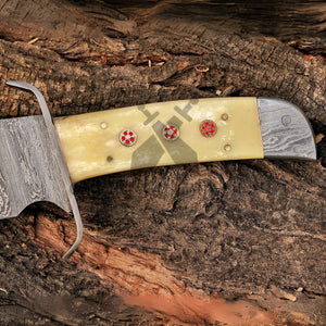 Channel the spirit of legends with the Lumberjack Legacy Razor – a bold, handcrafted 15" straight razor designed for those who value power and precision. Featuring a 10" Damascus steel blade known for its strength and sharpness, this razor is built to impress. The 5" handle, made from genuine camel bone with a Damascus bolster, offers a striking balance of rugged charm and refined style.