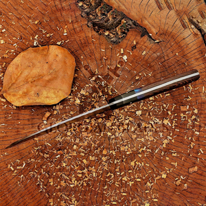 Crafted with a full tang construction, it ensures strength and control, while the Wenge wood handle, accented with a resin strip and G10 bolster, provides a comfortable, ergonomic grip for long prep sessions.