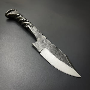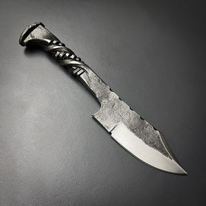 Featuring the Jun hand forged USA made Railroad Spike Knife where rugged history meets modern craftsmanship of Jun knife artisans. Forged from authentic railroad spikes, this unique blade embodies durability and strength. Each knife is hand-finished to ensure a sharp, reliable edge and a distinct, weathered look. Perfect for collectors, outdoor enthusiasts, and anyone who appreciates a piece of American heritage with a functional twist. Embrace the spirit of the tracks with every cut.